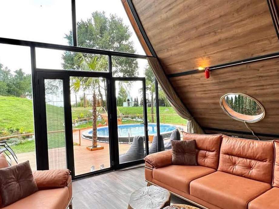 Sade, şık ve romantik detaylarla tasarlanmış bu bungalov, çiftlere özel anlar yaratmak için hazırlandı. Süsleme seçenekleriyle sürpriz organizasyonlara da uygun.